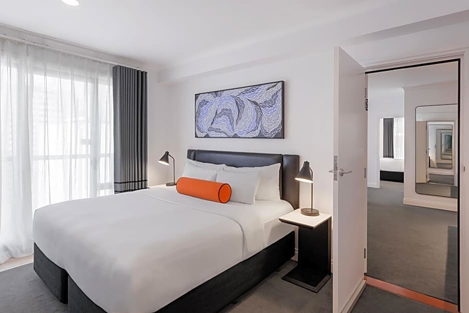 This luxury apartment features a fully equipped kitchen, laundry facilities and an open-plan living and dining area. This apartment is a superior room interconnecting with a deluxe one bedroom suite interconnecting with an executive one bedroom suite.
